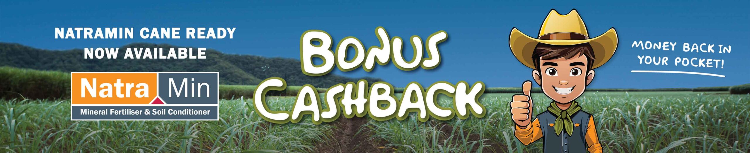 Terms and Conditions: This offer entitles the bearer to $25 bonus cash back per tonne when purchasing three or more tonne from the NatraMin Mineral Fertiliser and Soil Conditioner Range in a single transaction prior to 30 September 2025.